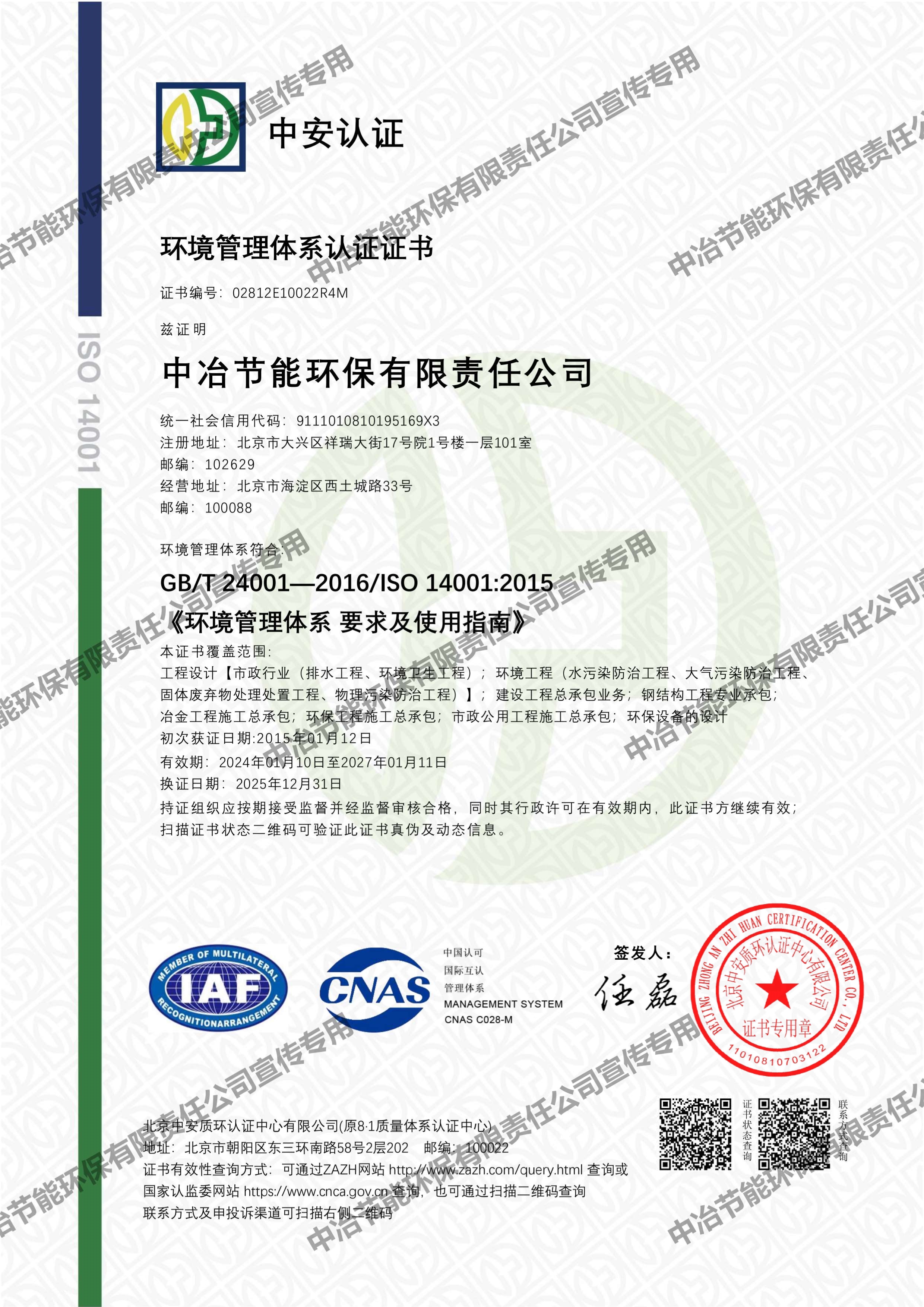 環境管理體系認證證書
