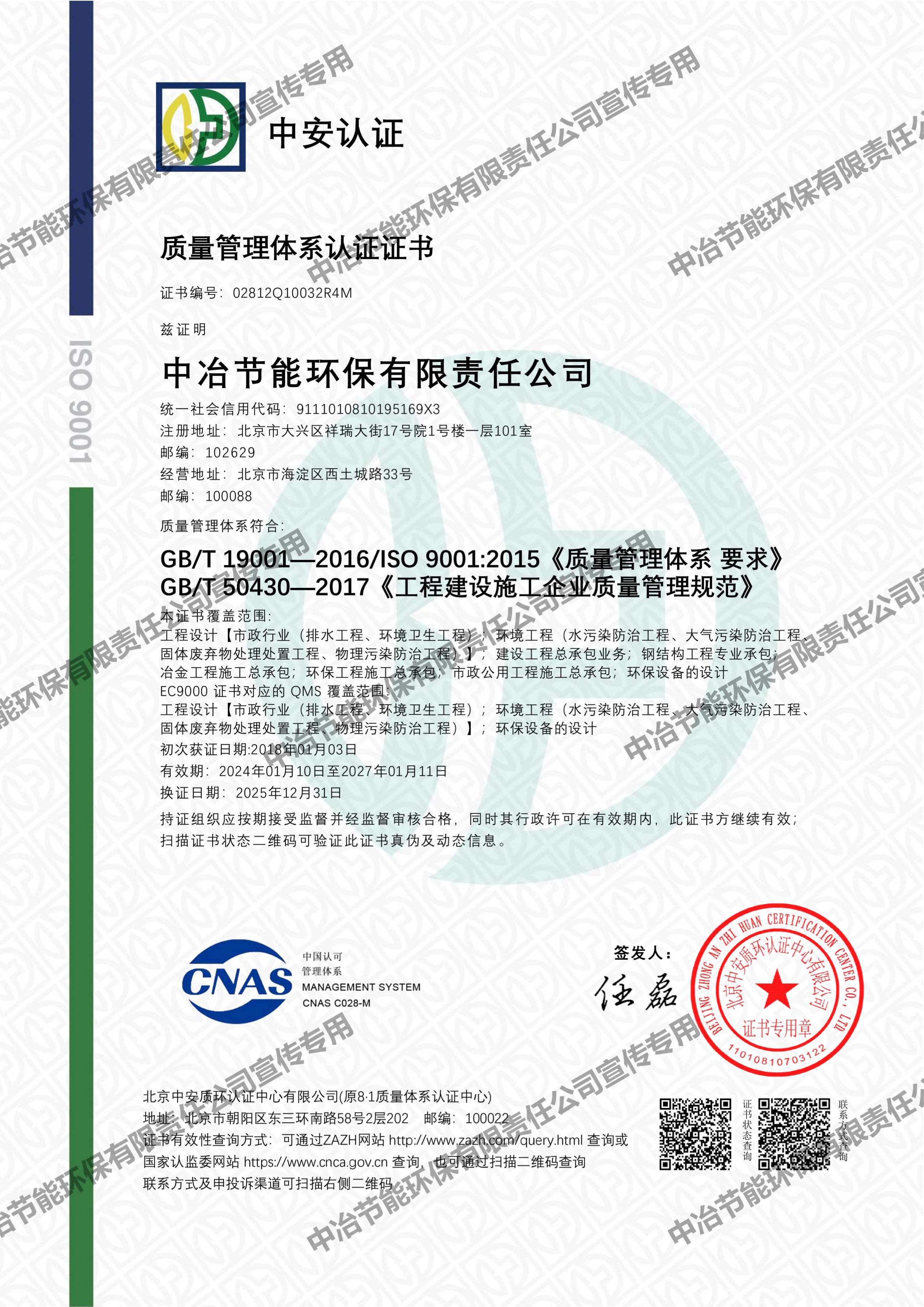 質量管理體系認證證書